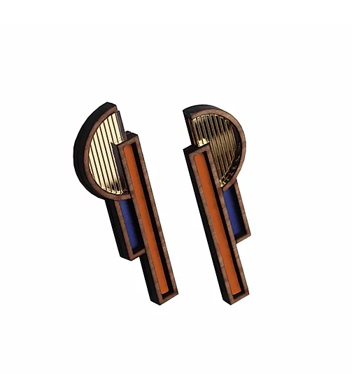 Lightweight earrings, made from acrylic and brushed brass